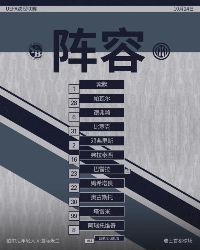 2024-25赛季欧冠联赛阶段第3轮,国际米兰客场对阵伯尔尼年轻人,凭借小图拉姆在补时阶段的绝杀球,国米客场1比0战胜对手。
